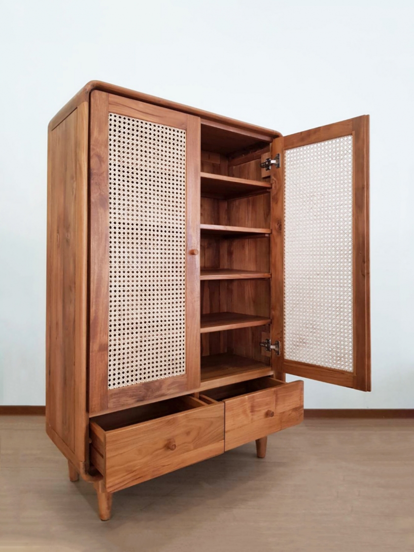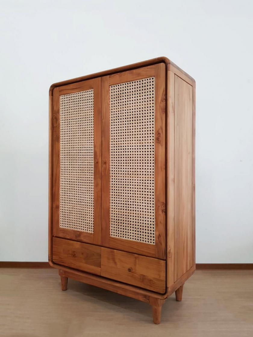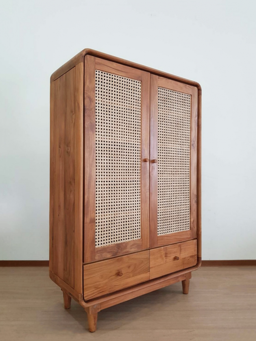 WC002 柚木 藤編下二抽鞋櫃